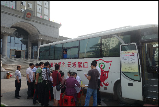 我院执行局乔琦同志已经连续32次参加无偿献血活动,献血总量已达6400ML。行政庭的王统同志是第一次当“献血英雄”,在领导和同事们的加油打气下克服了对血液和针头的恐惧,微笑着献完200ML,有些女干警带着胆怯走上献血车,但却带着自豪走下车来。